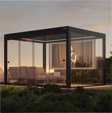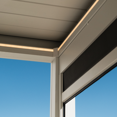 Maîtrisez les éléments avec PERGOLUX. Réglez la lumière, l’air et l’ombre grâce à un toit orientable jusqu’à 130°.